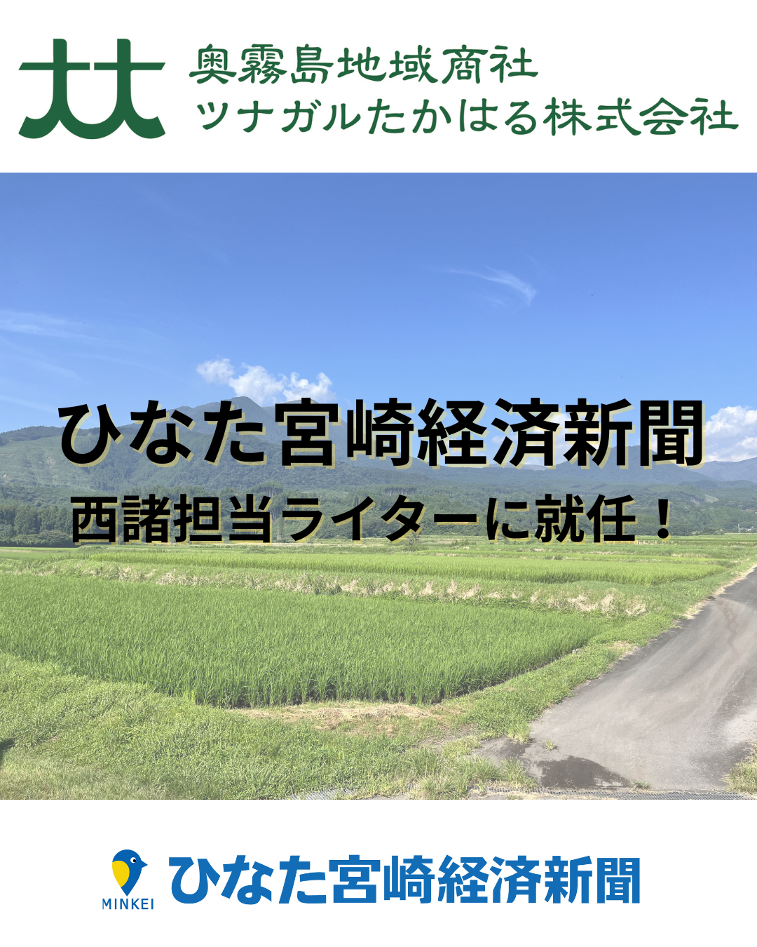 この度、Webニュースメディア『ひなた宮崎経済新聞』の西諸エリア担当ライターに就任しました。
